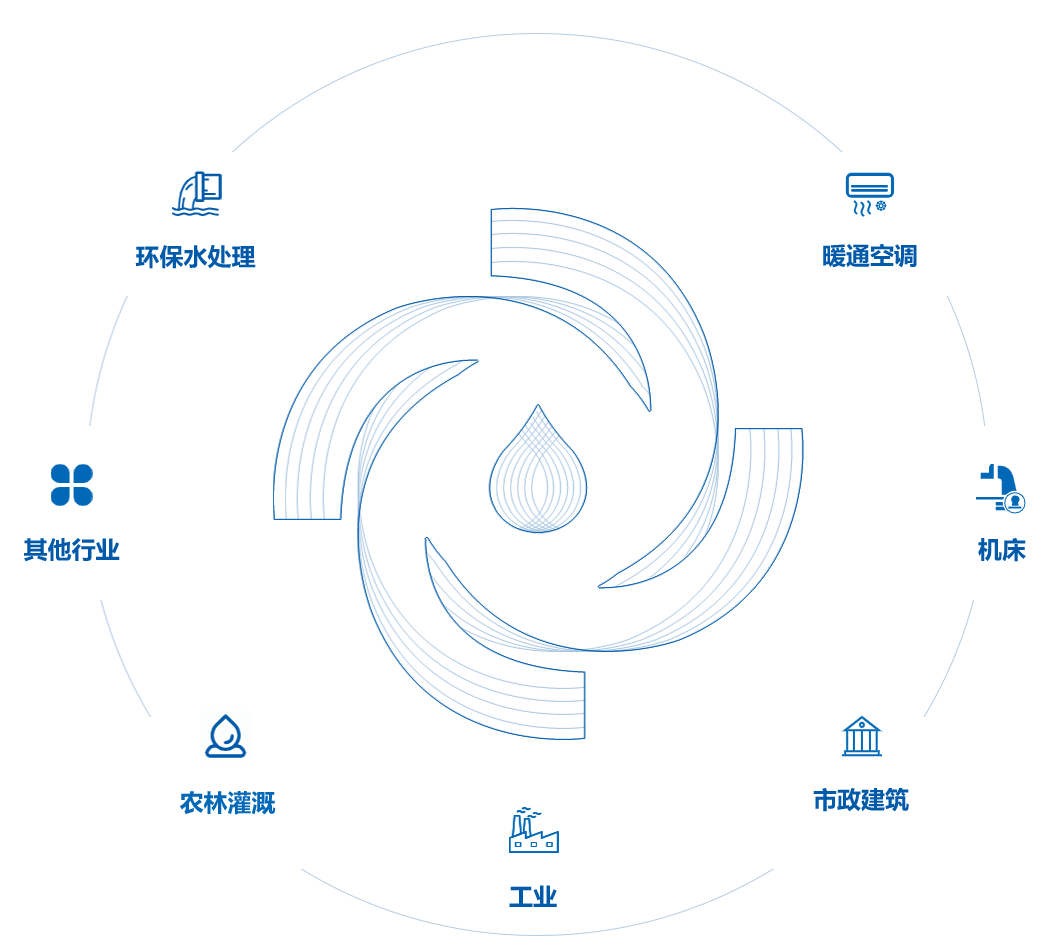 旗下系列產(chǎn)品廣泛應(yīng)用于環(huán)保水處理、暖通空調(diào)、機(jī)床、市政建筑、工業(yè)、農(nóng)林灌溉等諸多領(lǐng)域。